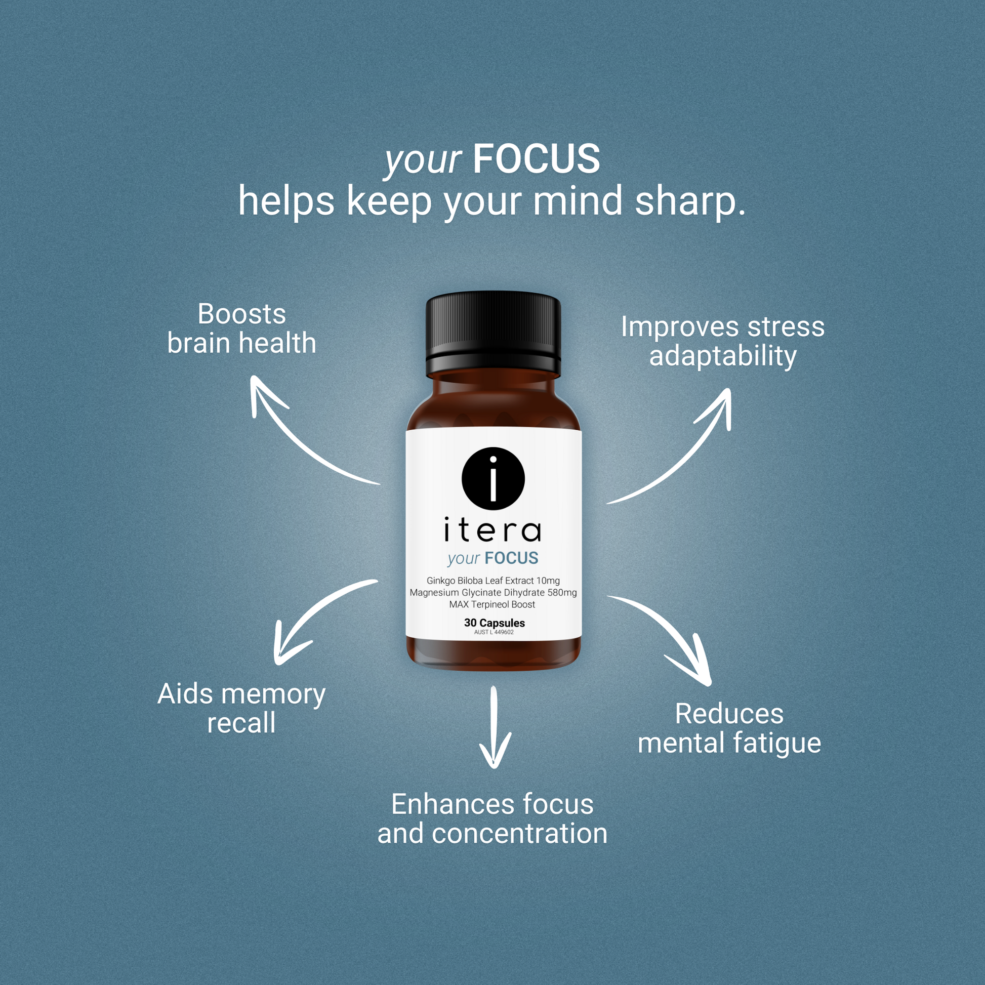 - Your FOCUS: Enhances mental clarity, cognitive function, and sustained concentration.